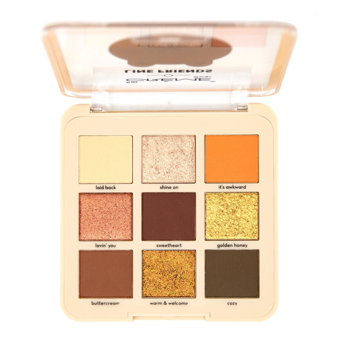 EYESHADOW INGREDIENTS: [LAID BACK, IT’S AWKWARD, SWEETHEART, BUTTERCREAM, COZY] Talc, Mica, Silica, Dimethicone, Ethylhexyl Palmitate, Polybutene, Magnesium Palmitate, Magnesium Stearate, Phenoxyethanol, Tocopheryl Acetate. May Contain (+/-): Iron Oxides (Cl 77491, Cl 77492, Cl 77499), Titanium Dioxide (Cl77891), Red 40 Lake (Cl 16035), Yellow 5 Lake (Cl 19140). [SHINE ON, GOLDEN HONEY] Mica, Dimethicone, Ethylhexyl Palmitate, Talc, Polybutene, Magnesium Palmitate, Magnesium Stearate, Phenoxyethanol, Tocopheryl Acetate. May Contain (+/-): Iron Oxides (Cl 77491, Cl 77492), Titanium Dioxide (Cl 77891), Blue1 Lake (Cl 42090), Yellow 5 Lake (Cl 19140). Magnesium Palmitate, Polybutene, Magnesium Stearate, Phenoxyethanol, Tocopheryl Acetate, Iron Oxides (Cl 77491), Cl 77492). [WARM & WELCOME] Polyethylene Terephthalate, Ethylhexyl Palmitate, Acrylates Copolymer, Microcrystalline Wax, Tridecyl Trimellitate, Synthetic Wax, Polybutene, Hydrogenated Vegetable Oil, Phenoxyethanol, Tocopheryl Acetate, Aluminum Powder (Cl 77000), Iron Oxide (Cl 77491).